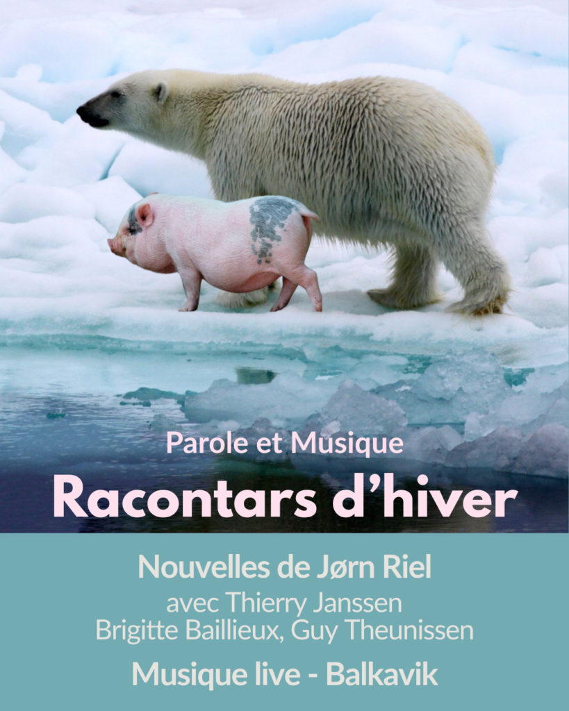 En plein hiver belge, allons chercher la neige au Groenland ! Dans une cabane gelée, réchauffons-nous : écoutons les racontars épiques et très drôles du truculent écrivain Jørn Riel*, et goûtons aux airs bulgaro-moldavo-frénético… de quatre bruxellois ! Un texte totalement givré, une musique revigorante. On va être bien !